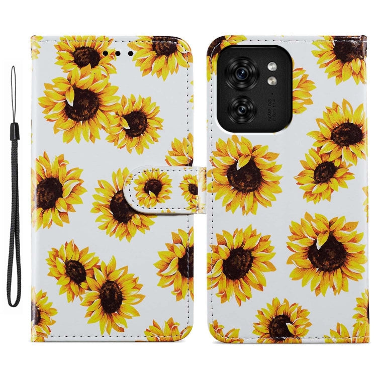 Funda de Cuero para Motorola Edge 40 con Tapa Horizontal y Patrón Pintado (Girasol)