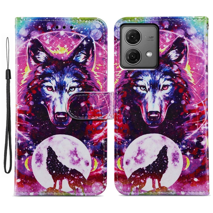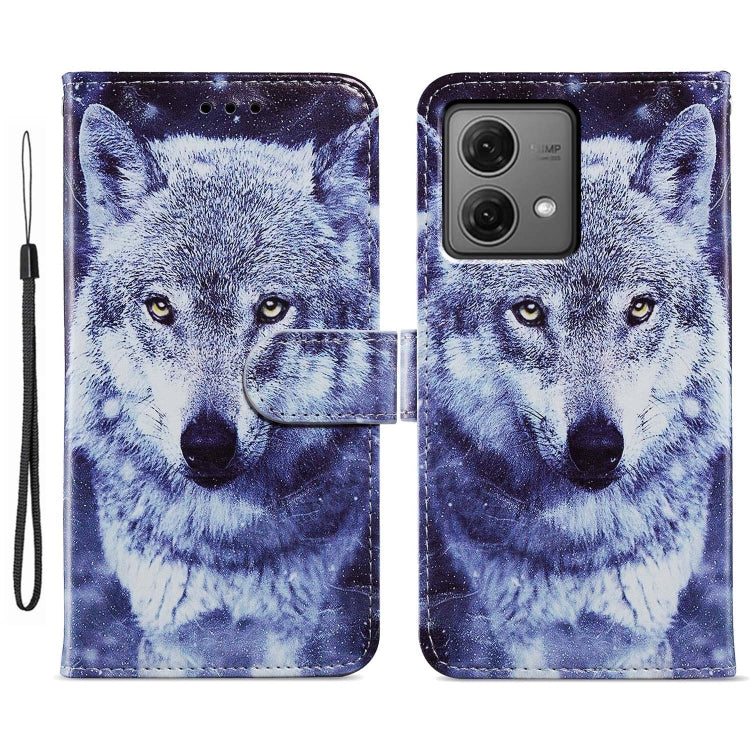 Funda de Cuero para Motorola Moto G84 con Tapa Horizontal y Patrón Pintado (Lobo Blanco)