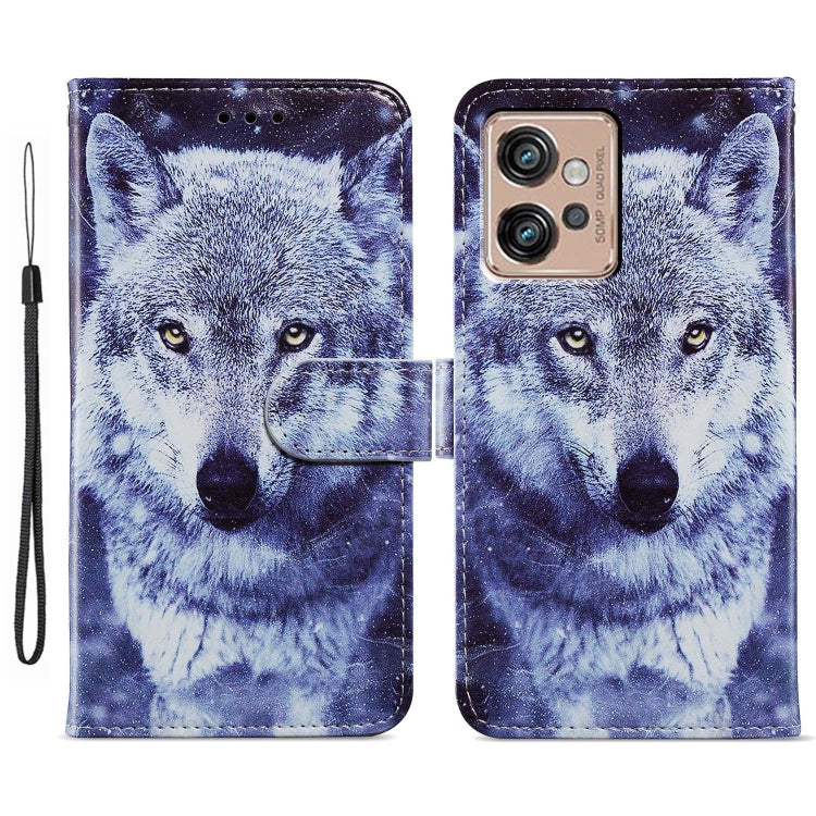 Funda de Cuero para Motorola Moto G32 con Tapa Horizontal y Patrón Pintado (Lobo Blanco)