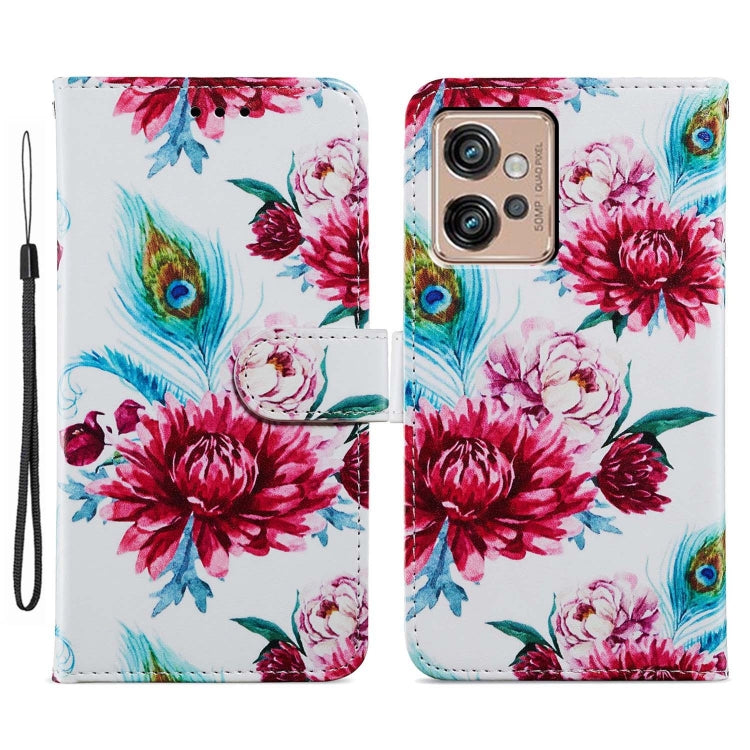 Funda de Cuero para Motorola Moto G32 con Tapa Horizontal y Patrón Pintado (Flor de Pavo Real)