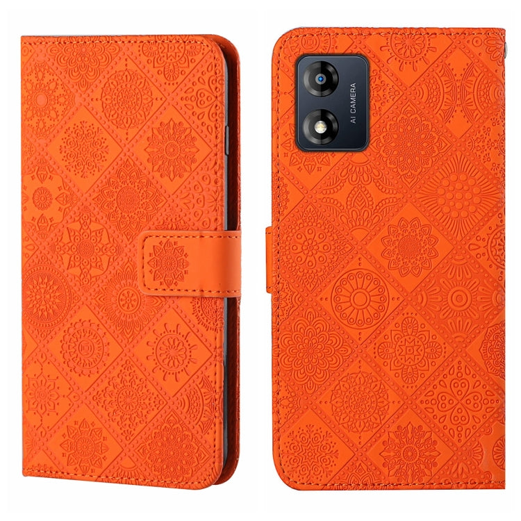 Funda de Cuero para Motorola Moto E13 con Patrón en Relieve Estilo Étnico (Naranja)
