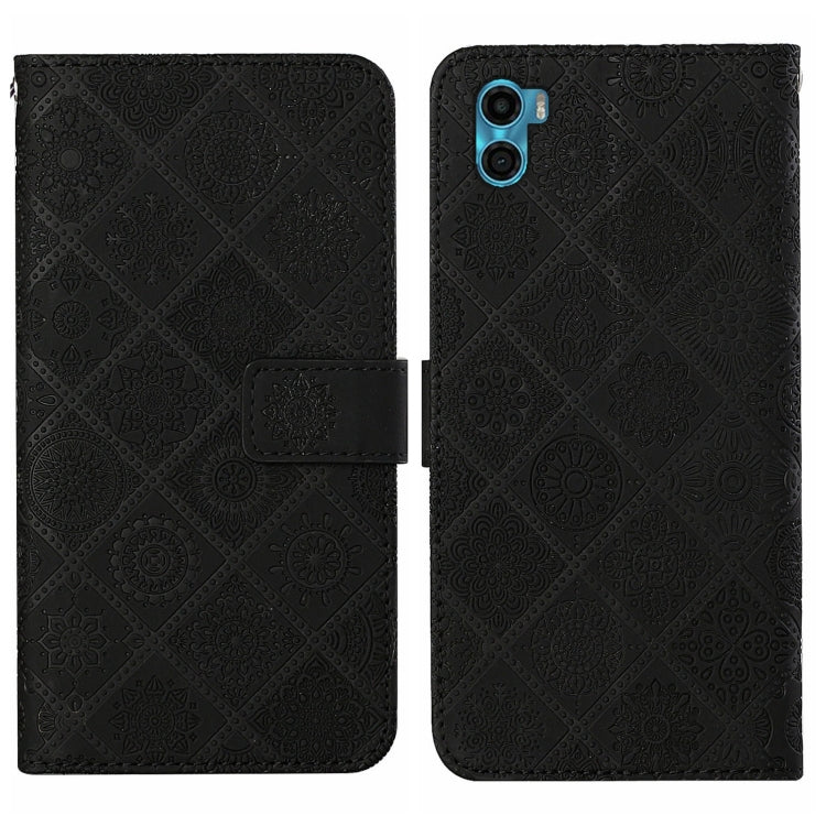 Funda de Cuero para Motorola Moto E22S y E32 4G con Patrón en Relieve Estilo Étnico (Negro)