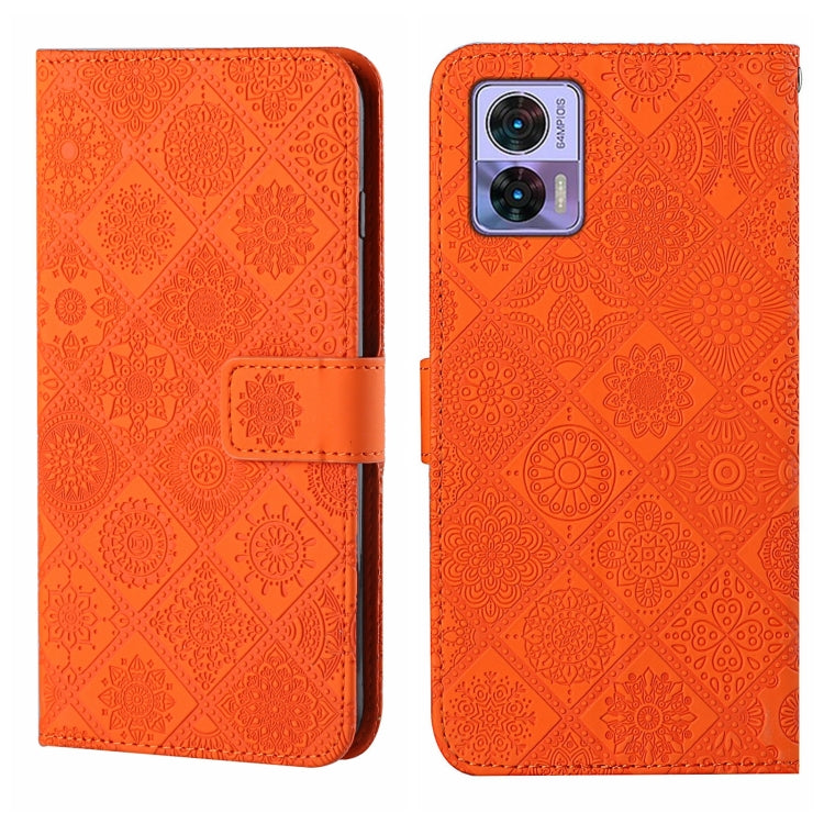 Funda para Motorola Edge 30 Neo de Cuero con Patrón en Relieve Étnico (Naranja)