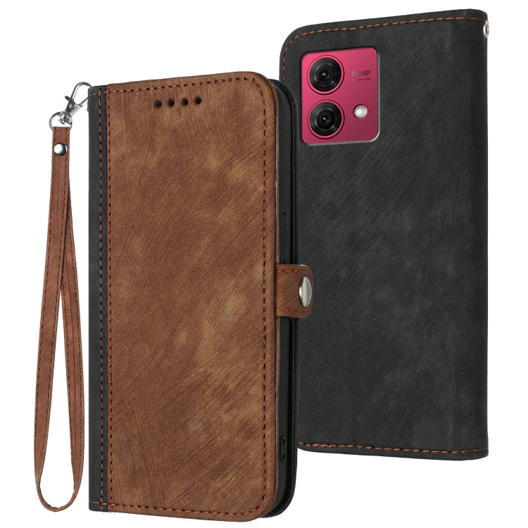 Funda de Cuero Motorola Moto G84 5G con Correa de Mano, Doble Pliegue y Hebilla Lateral (Marrón)