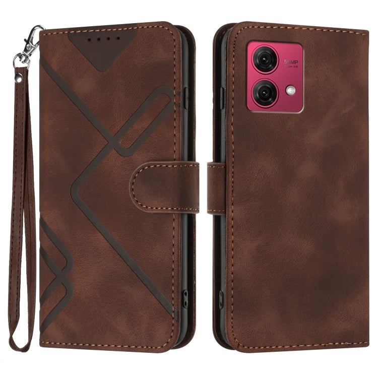 Funda de Cuero para Motorola Moto G84 5G con Sensación de Piel y Patrón de Líneas (Café)