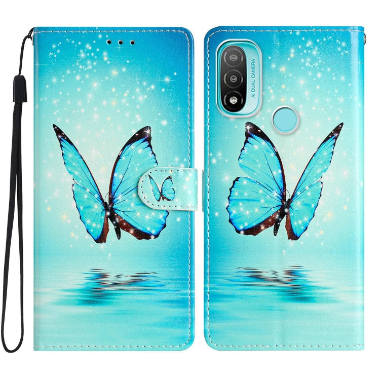 Estuche para Motorola Moto E20 / E30 / E40 de Cuero con Dibujo Coloreado (Mariposa Azul)