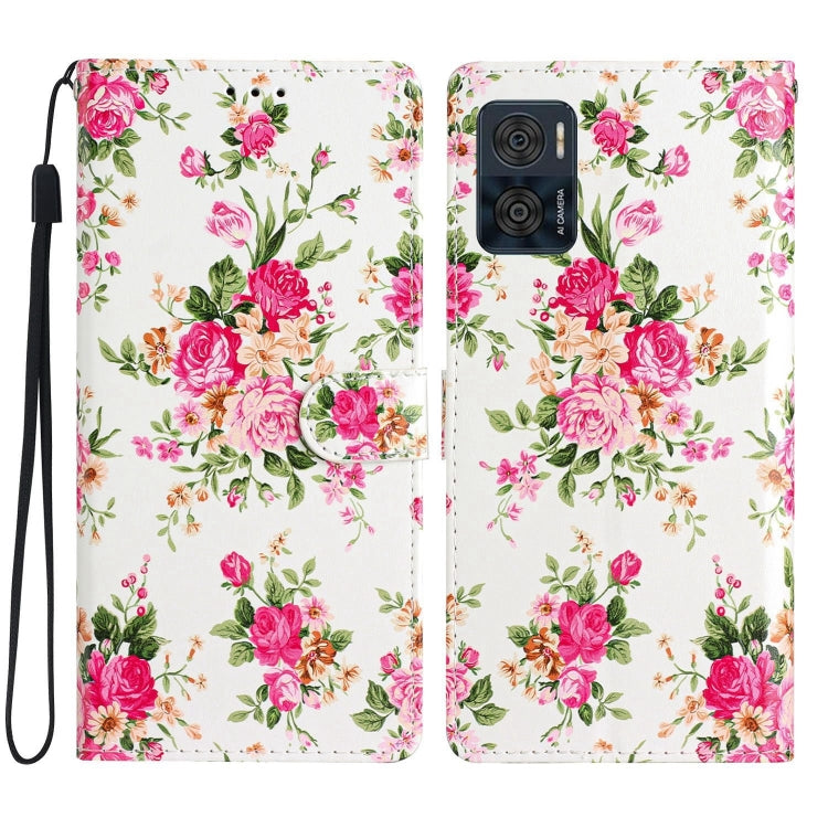 Estuche de Cuero para Motorola Moto E22 con Dibujo Coloreado Peonías