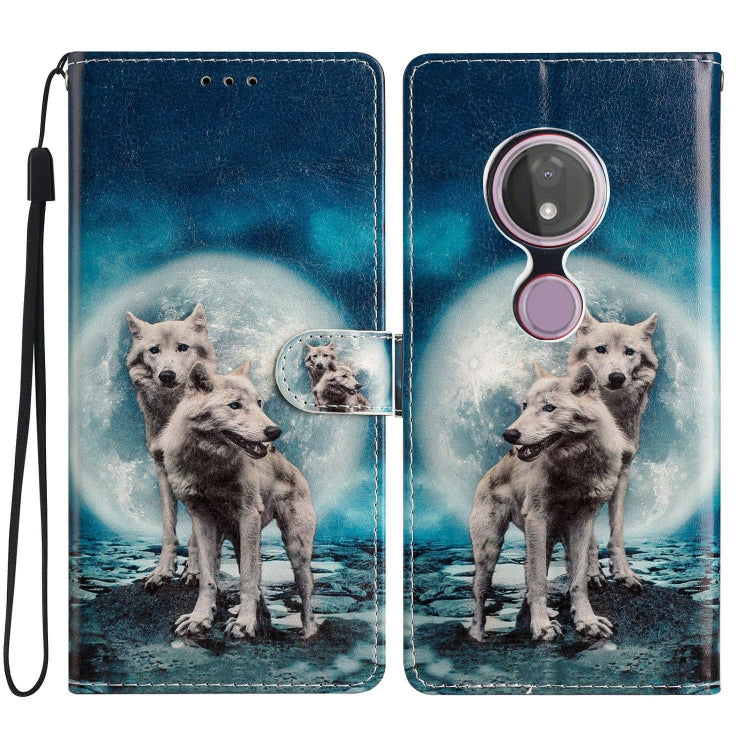 Estuche para Motorola Moto E20/E30/E40 de Cuero con Dibujo a Color (Twin Wolves)