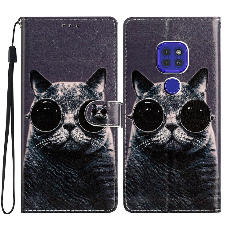 Estuche de Cuero para Motorola Moto E20/E30/E40 con Dibujo Coloreado Gafas de Sol Cat