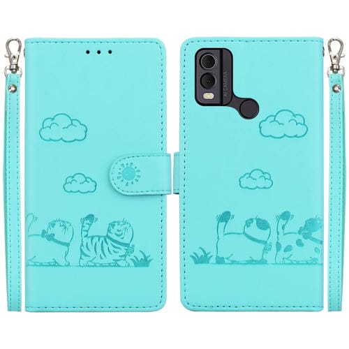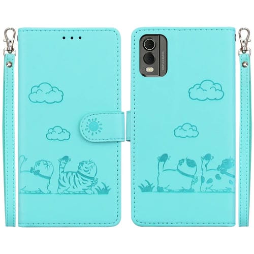 Funda de Cuero Rfid para Nokia Xr21 con Diseño de Gatos Lindos (Oro Rosa)