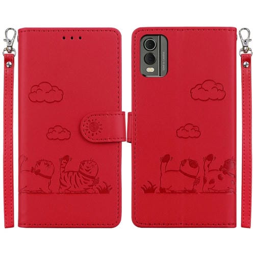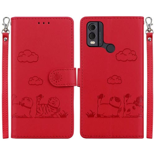Funda de Cuero con Cordón para Nokia C01 Plus y C1 2Nd Edition (Rojo)