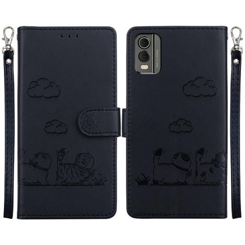 Funda de Cuero Rfid para Nokia Xr21 con Diseño de Gatos Lindos (Azul)
