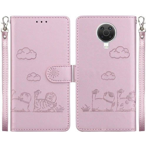 Funda de Cuero Rfid para Nokia G10/G20 con Diseño de Gatos (Oro Rosa)