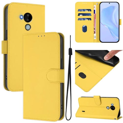 Funda Piel Sintética con Cordón para Nokia C01 Plus/C1 2.ª Edición (Amarillo Limón)