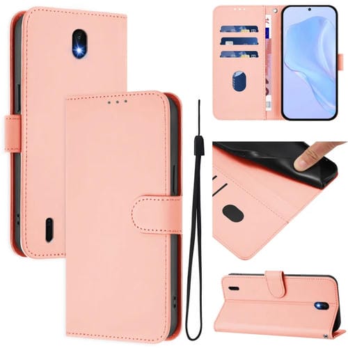 Funda de Piel Sintética con Cordón para Nokia C01 Plus y C1 2.ª Edición (Rosa)