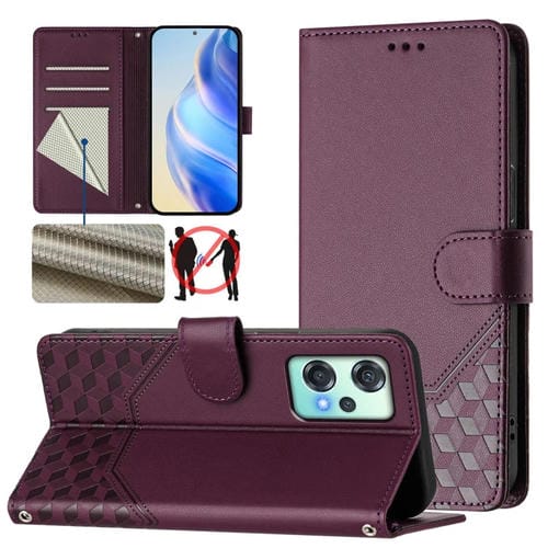 Funda de Cuero Rfid con Relieve en Panal para OnePlus Nord Ce 2 Lite/Nord 2 Lite (Violeta)