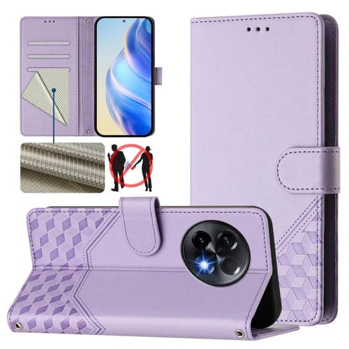 Funda de Cuero Rfid con Relieve de Panal Global para OnePlus 12 5G (Morado Claro)