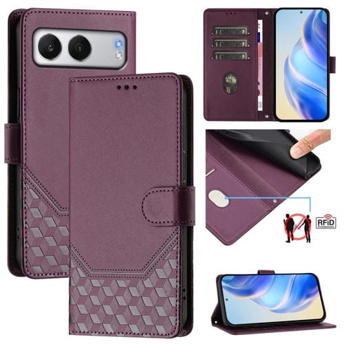 Funda de Cuero Rfid con Relieve en Panal para OnePlus Nord Ce 3 Lite/Nord N30 (Violeta)
