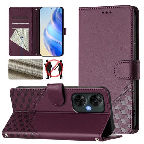 Funda de Cuero Rfid con Relieve en Panal para OnePlus Nord Ce4 Lite (Morado Claro)