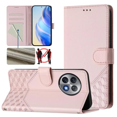 Funda de Cuero Rfid con Relieve en Panal para OnePlus Ace 2 Pro 5G (Rosa)