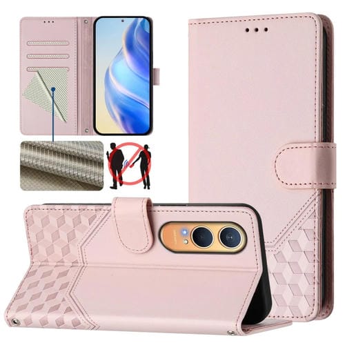 Funda de Cuero Rfid con Relieve en Panal para OnePlus Nord Ce4 Lite (Rosa)