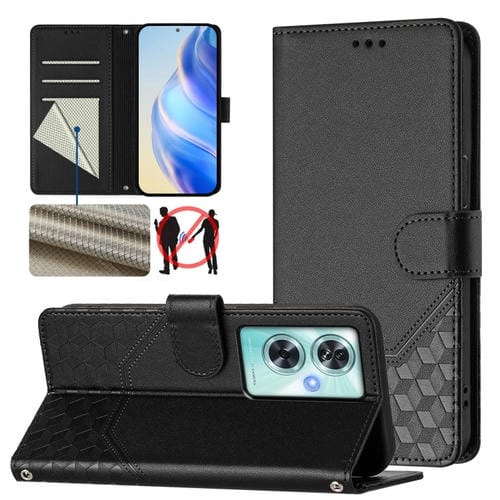 Funda de Cuero Rfid con Relieve de Panal para OnePlus Nord N30 Se 5G (Negra)