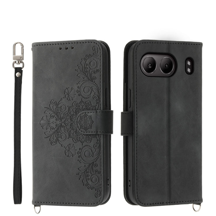 Funda de Cuero con Relieve de Flores para OnePlus Nord 4 5G (Negra)