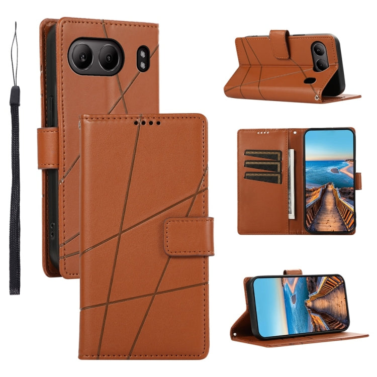 Funda para Teléfono OnePlus Nord 4 con Textura de Cuero Genuino PU y Líneas en Relieve (Marrón)