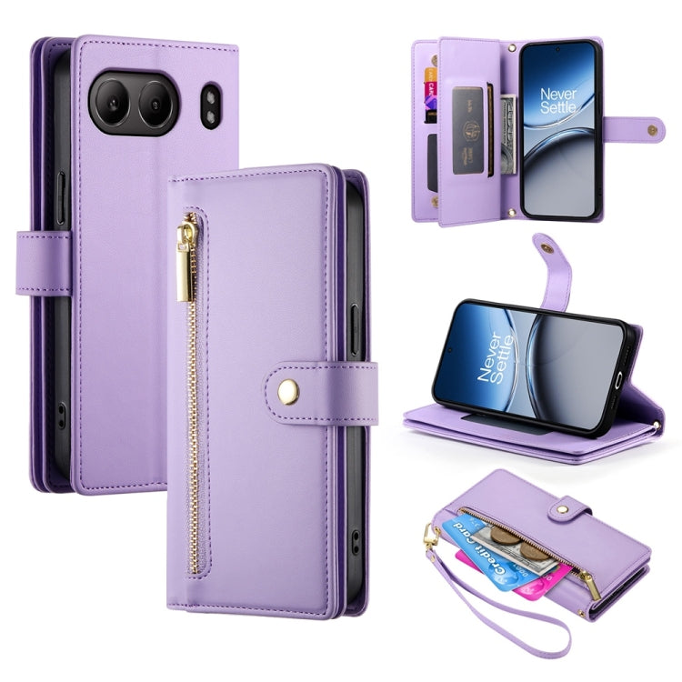 Funda de Cuero para OnePlus Nord 4 5G con 9 Ranuras para Tarjetas y Cremallera (Morado)