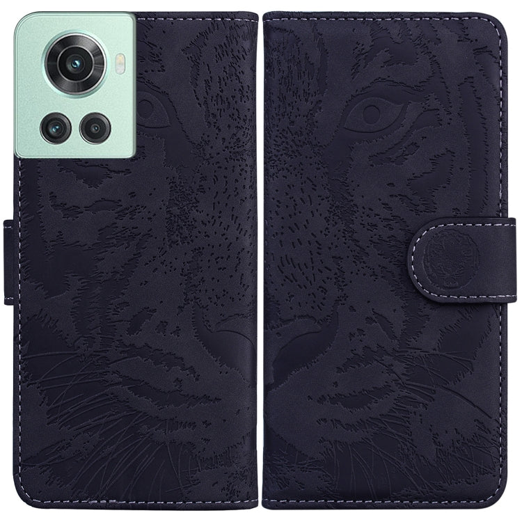 Funda para OnePlus 10R Ace Tiger con Patrón Estampado Horizontal de Cuero (Negro)