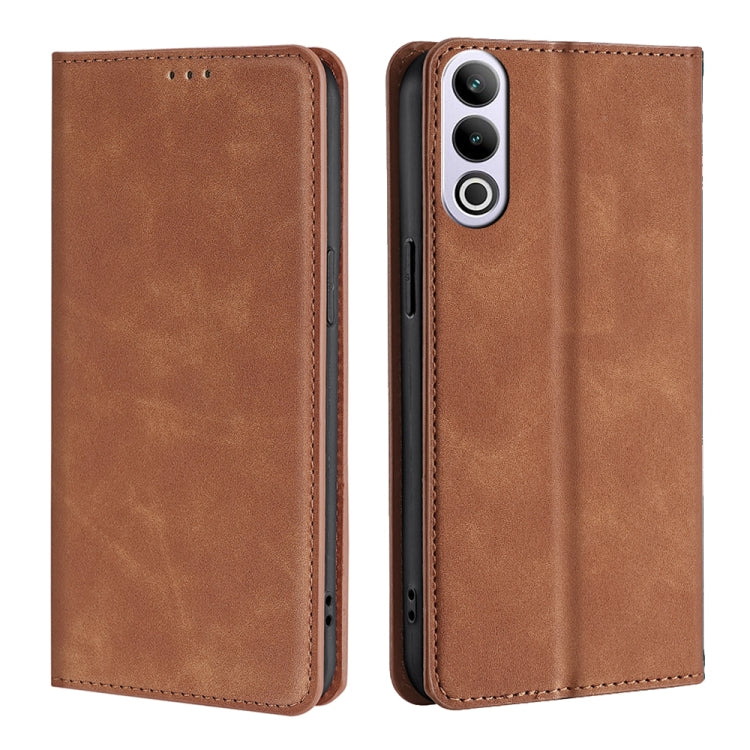 Funda de Cuero Magnética Skin Feel para OnePlus Ace 3V 5G (Marrón Claro)