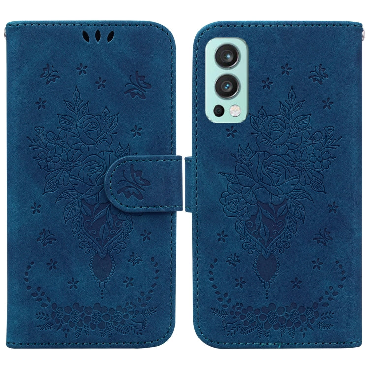 Funda para OnePlus Nord 2 5G Butterfly Rose en Cuero Relieve (Azul)