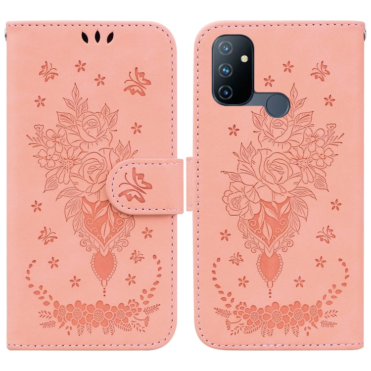 Funda para OnePlus Nord N100 Cuero en Relieve Butterfly Rose (Rosa)