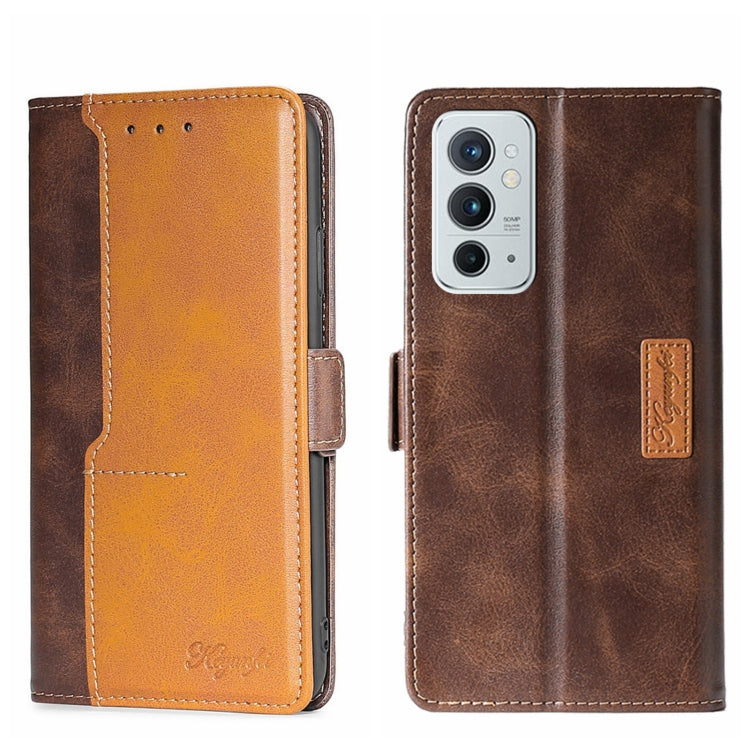 Funda de Cuero para OnePlus 9Rt 5G con Hebilla Lateral y Color de Contraste (Marrón Oscuro + Dorado)