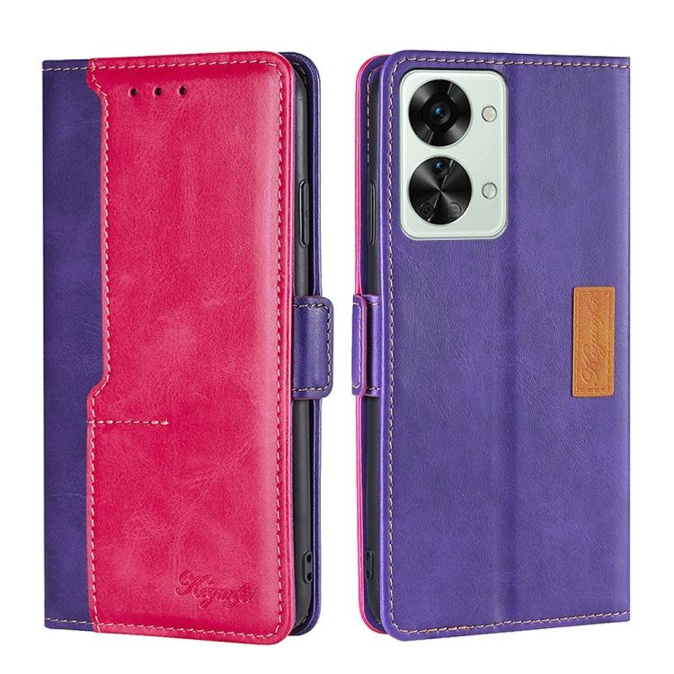 Funda de Cuero para OnePlus Nord 2T con Hebilla Lateral y Color de Contraste (Púrpura + Rosa Roja)