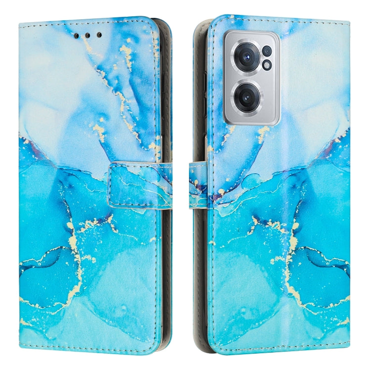 Funda de Cuero para OnePlus Nord Ce 2 5G con Patrón de Mármol Pintado (Azul Verde)