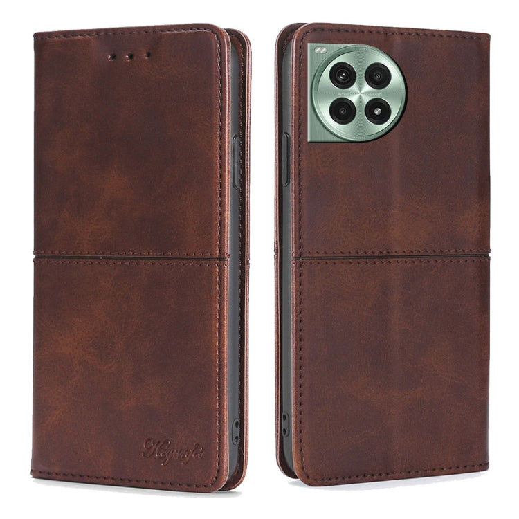 Funda de Cuero Magnética OnePlus Ace 3 Pro 5G Textura de Vaca (Marrón Oscuro)