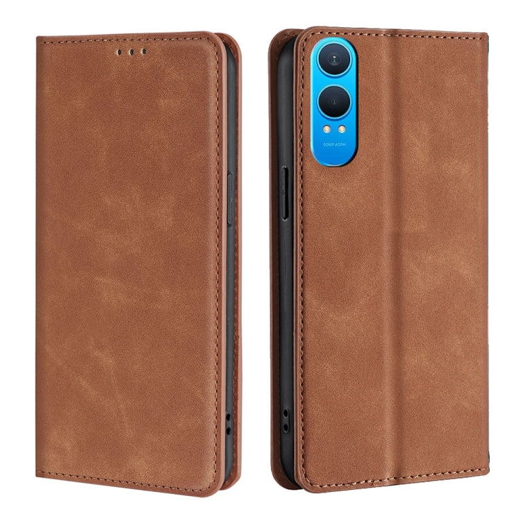 Funda de Cuero Magnética para OnePlus Nord Ce 4 Lite 5G (Marrón Claro)