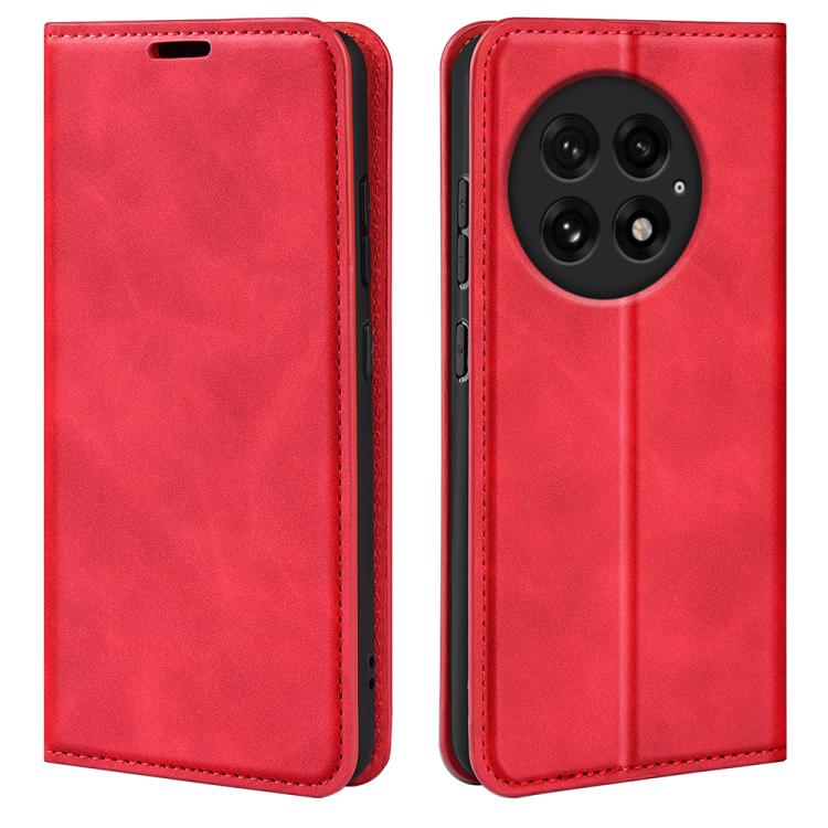Funda de Cuero con Ventosa Magnética para OnePlus Ace 5 Pro Retro-Skin (Roja)