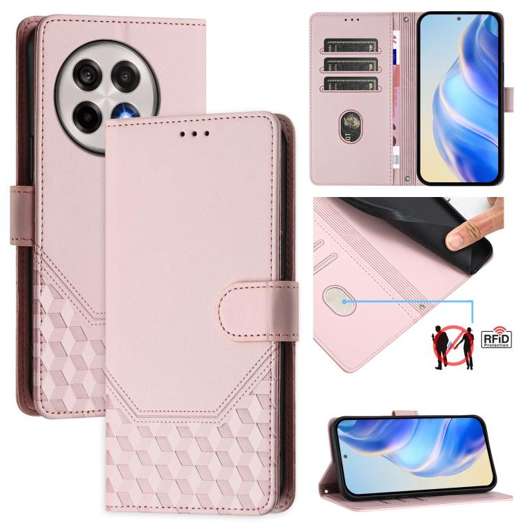 Funda de Cuero Rfid con Relieve en Panal para OnePlus 13R/Ace 5 Pro 5G (Rosa)