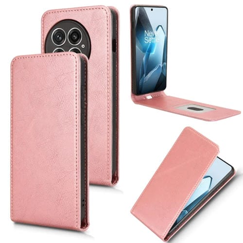 Funda de Cuero con Tapa Vertical Magnética para OnePlus 13 (Oro Rosa)