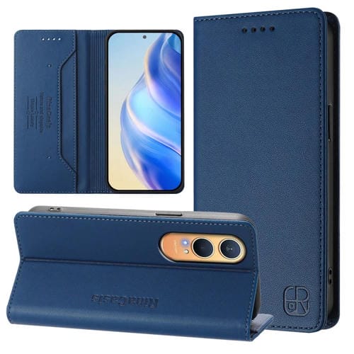 Funda de Cuero con Doble Pliegue y Succión Magnética RFID para OnePlus 11 Rc01 (Azul Oscuro)