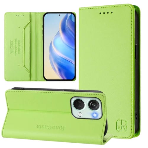 Funda de Cuero con Doble Pliegue y Succión Magnética Rfid para OnePlus Nord 2T Rc01 (Verde Hierba)