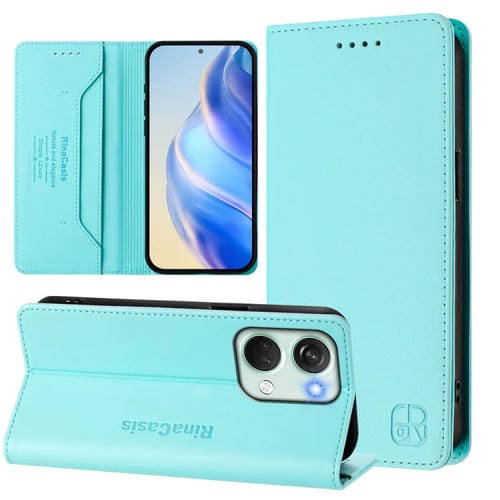 Funda de Cuero con Doble Pliegue y Succión Magnética Rfid para OnePlus Nord Ce 5G Rc01 (Verde Menta)