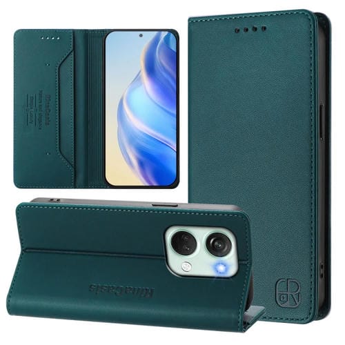 Funda de Cuero para OnePlus 13 Rc01 con Doble Pliegue y Succión Magnética Rfid (Verde Oscuro)