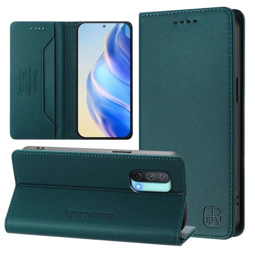 Funda de Cuero con Doble Pliegue y Succión Magnética RFID para OnePlus Nord 2T Rc01 (Verde Oscuro)