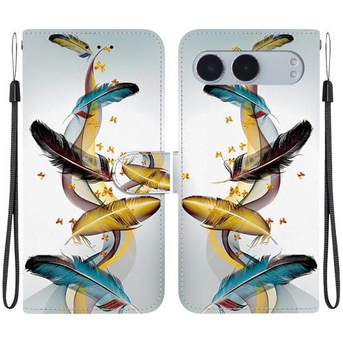 Funda de Cuero para OnePlus Nord 4 (Plumas de Mariposa Doradas) con Dibujo y Textura de Cristal