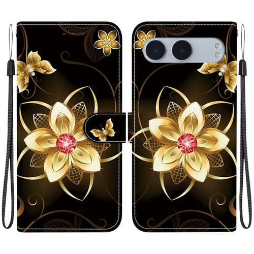 Funda de Cuero para OnePlus Nord 4 con Dibujo de Colores y Textura de Cristal (Flor Dorada)