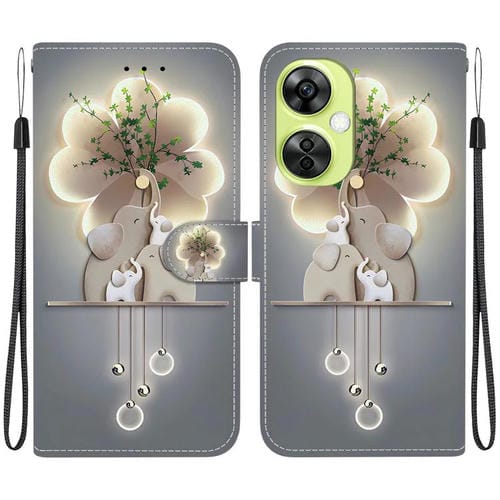 Funda de Cuero con Dibujo de Colores y Textura de Cristal para OnePlus Nord CE 3 Lite/N30 (Elefantes)