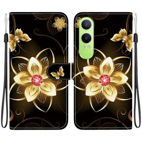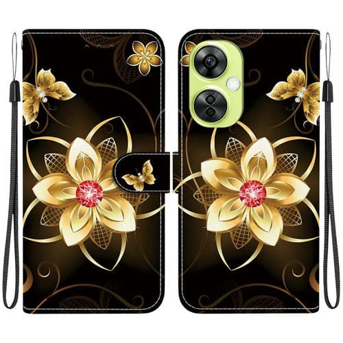 Funda de Cuero para OnePlus Nord CE4 Lite con Dibujo de Colores y Textura de Cristal (Flor Dorada)